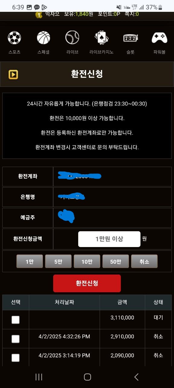 환전 취소당하고 추롤 환전 금액500프로 맞고