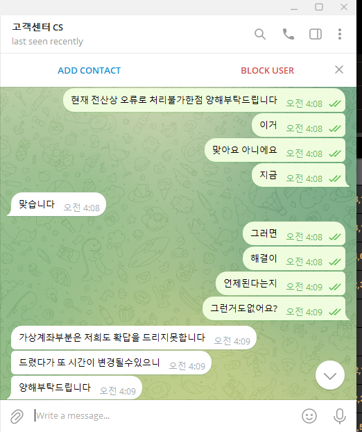 로또번호 받는 밴드에서 있다가 계속 밴드채팅창에 글이올라오길래 가입해서 동행파워사다리를 베팅햇습니다 처음에 80만원 충전해서 베팅이 잘되서 300만원을 환전했었고 그뒤로 죽어서 재충전하고 다시 올라와서 686만원이 됬는데 4월 8일 저녁 8시에 환전을 누르자 그 뒤에 갑자기 환전을 취소시키면서 상위추천인한테 문의하라는 말만 지속적으로 반복하였습니다 그래서 네이버 밴드를 다시 들어갈려고 하니 제 계정은 이용제한 조치가 되어있고 상위추천인 연락처를 계속 달라고 하니 지속적인 매크로 답변만 하고 13시간째 제 돈을 안주고 상위추천인이랑 사이트가 절 놀립니다 정말 개 악질 사이트입니다 승부본거에 대해서 돈도 안주고 하루종일 상위 추천인에게 문의하라하고 새벽에 제가 고객센터에 다 인증하고 아침에 가상계좌 출금되면 환전해준다더니 이제는 아예 쌩깝니다 절대 이용하지 마세요