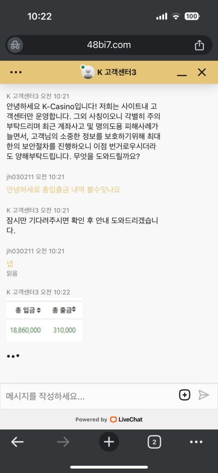 온카판 보증으로 케이카지노(벳계열) 사용하긴했는데 안그래도 케이카지노에서 1850죽고잇는데 화나네요