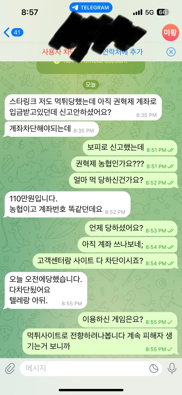 혹시 피해입으신분 연락주세요 가만히 있으면 개호구됩니다. 텔@hwinique