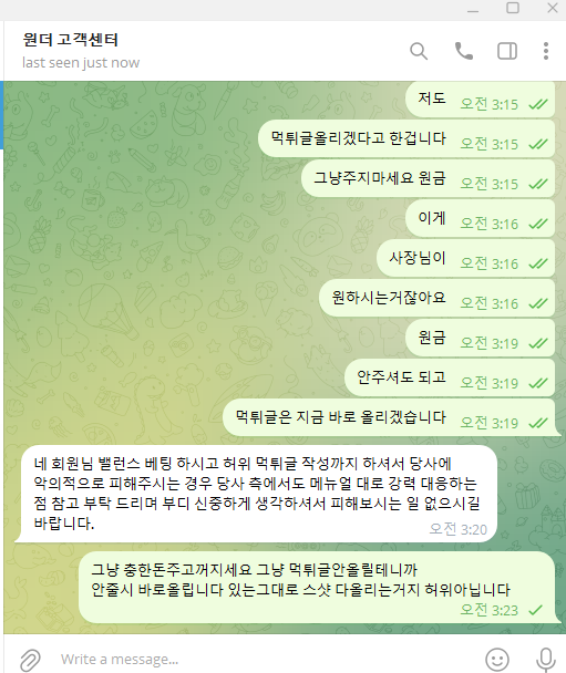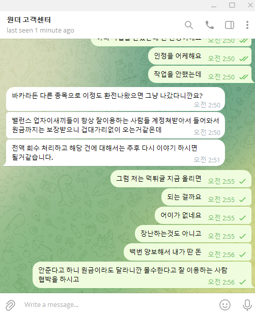 ㅠㅠㅠㅠㅠ 배팅을 7~8시간했구요 그래서 딴돈못받을거같으니 한 2~5시간 대화후에 충한돈이라도 우선달라 소중하다 그거조차도
